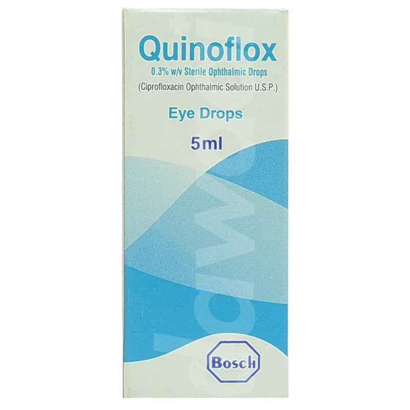 Quinoflox 0.03% 5ml Eye Drops are a sterile ophthalmic solution designed to treat various eye infections, including bacterial conjunctivitis and corneal ulcers. This fluoroquinolone antibiotic works by killing bacteria that cause these infections, providing effective relief and promoting healing.